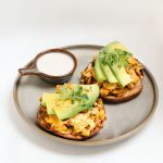 RD$ 450.00 Base tostada de batata hecha con superalimentos como chía y linaza, huevos revueltos con vegetales, hongos, aguacate en lonjas y nuestro cashew aioli. --------------------- | |